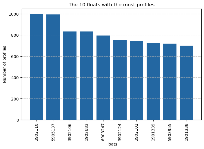 Obviously the distribution of profiles is not equitable between all the floats, so let’s take a look at the 10 floats that have acquired the most profiles.